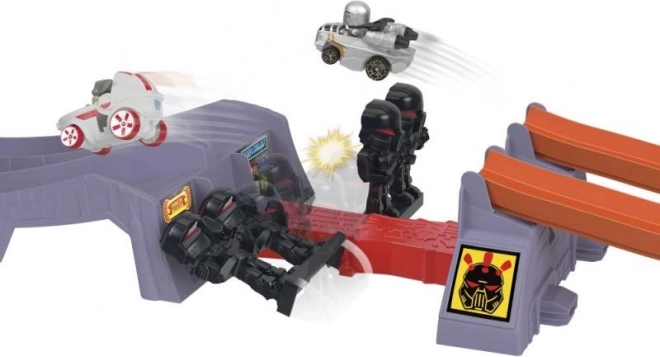 Zažijte napínavé závody ve světě HOT WHEELS RACERVERSE a STAR WARS. Spusťte auta Grogu a Mandalorian z vrcholu trati, proleťte bránami jako světelné meče a sledujte, kdo první přeskočí překážku se stormtroopery a projede cílem. Ideální dárek pro fanoušky od 4 let.