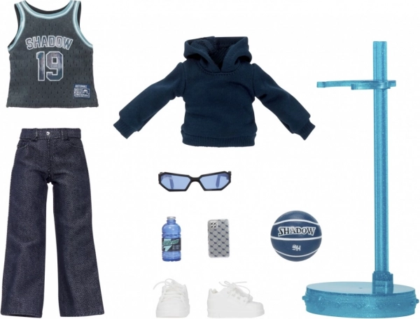 Obsahuje širokou škálu módních doplňků, které zahrnují košili 'Shadow 19', mikinu, džíny, tenisky a basketbalový míč. Doplňky podporují herní zábavu a rozšiřují možnosti stylování.