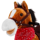 Tento houpací kůň v elegantním světlém hnědém provedení kombinuje klasickou dětskou zábavu s moderními interaktivními funkcemi. Měkký plyš příjemný na dotek, realistické sedlo s třmeny a otěže podporují přirozené držení a jistotu při houpání.