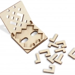 Dílky z přírodního dřeva do sebe přesně zapadají. Sestavení je čisté, rychlé a zároveň velmi uspokojivé.