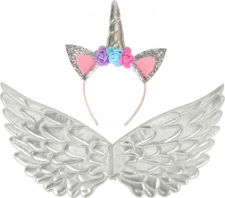 Tento nádherný kostým vám umožní proměnit vaše dítě v jedinečného jednorožce. Skládá se ze stříbrné sukně, elegantních křídel a detailně zpracované čelenky s růžkami. Ideální pro každou příležitost, kde si dítě může užít pohádkovou hru.