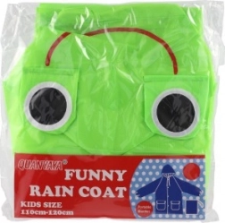 Pláštěnka má veselý žabí design s velkými očima na kapuci, který udělá z nošení pláštěnky zábavu pro každé dítě.