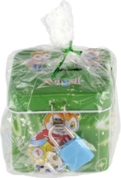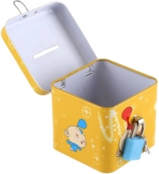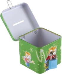Tento model dětské plechové pokladničky je navržen tak, aby byl jednoduchý a zároveň praktický. Díky své bezpečné konstrukci a atraktivnímu vzhledu s kreslenými postavičkami je perfektním doplňkem pro každé dítě.