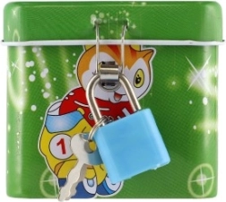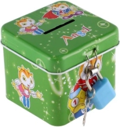 Perfektní pro děti, které se učí spořit, pokladnička má pevný zámek, který zajišťuje, že mince zůstanou tam, kde mají. Dostupná ve čtyřech různých barvách, nabízí něco pro každé dítě.
