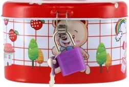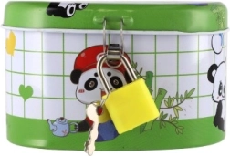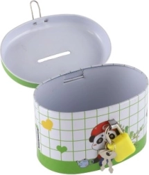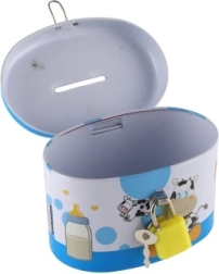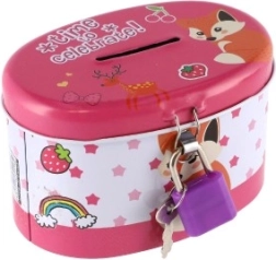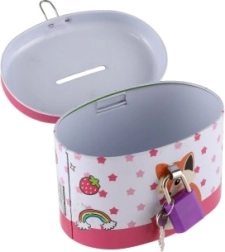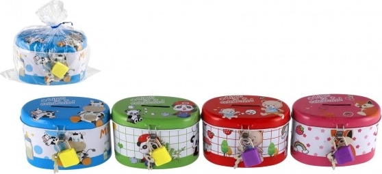 Ideální pokladnička pro děti, která kombinuje bezpečnost i zábavu. Dětská pokladnička je vyrobena z odolného plechu a je doplněna malým zámkem, který zaručuje, že peníze zůstanou v bezpečí. Víko je ozdobeno veselými ilustracemi, které osloví každého malého spořitele: