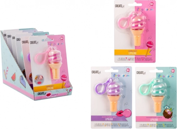 Hledáte praktickou a hravou kosmetickou drobnost? Lesk na rty Candy v podobě kornoutku se zmrzlinou kombinuje jemnou péči o rty s originálním designem. Díky karabince ho snadno připnete jako přívěsek a budete ho mít vždy po ruce.