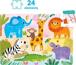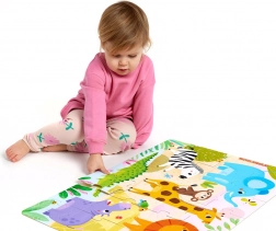 Zažijte zábavu s velkými a krásně ilustrovanými puzzly, které znázorňují oblíbená zvířata z africké savany. Puzzle nejen připravují děti na úžasné dobrodružství, ale také jsou skvělým vzdělávacím dárkem. Děti se z puzzlů učí o tvarech, barvách, rozvíjejí svou představivost a učí se soustředění. Puzzle pomáhají při relaxaci a učí trpělivosti.
