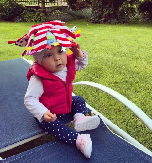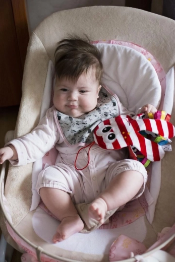 Výrazné červeno-bílé proužky a černé puntíky podporují zrakovou stimulaci novorozenců a kojenců.