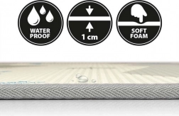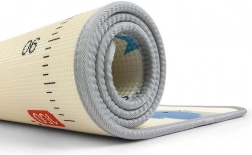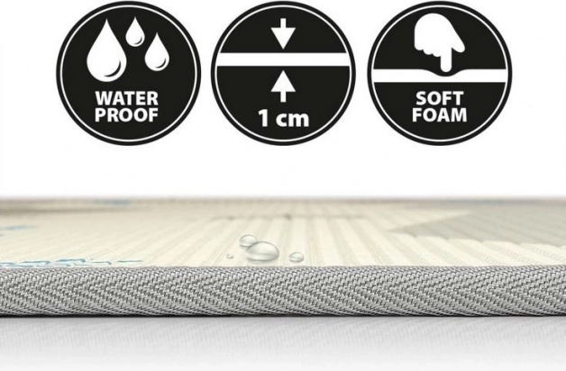 Díky protiskluzové a voděodolné úpravě se podložka snadno udržuje – stačí setřít. Je bez formamidu, ftalátů, PVC a BPA a splňuje normu EN 71, takže je vhodná od narození. Rolovací provedení usnadňuje skladování i přenášení, a tak ji využijete v obýváku, dětském pokoji i na výletech.