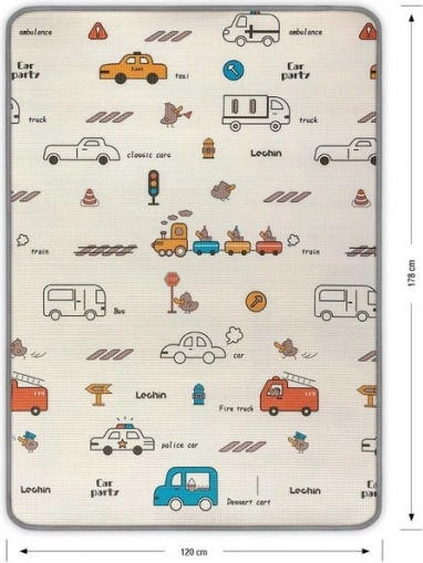 Podložka KINDER City od značky MILLY MALLY kombinuje bezpečí a pohodlí v jednom. Oboustranný design s atraktivními motivy podporuje rozvoj motoriky, motivuje k aktivitě a vytváří příjemné místo pro hru. 1 cm silná XPE pěna skvěle izoluje od chladu podlahy a výborně tlumí nárazy při pádech.