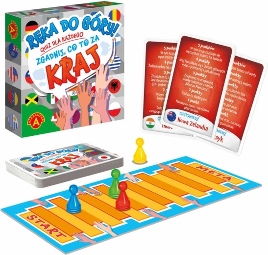 Hra Ręka do góry! Uhodni stát od ALEXANDER promění každý rodinný večer v napínavou výzvu. Čtěte nápovědy, přemýšlejte, která země se skrývá za fakty, a získejte nejvíce bodů za správnou odpověď s co nejmenším počtem indicií. Kompaktní balení se snadno vejde do batohu, takže si kvíz můžete užít doma i na cestách.