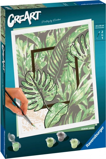 Kreativní sada CreArt Calming Leaves pro věk 12+. Uklidňující motivy, rozměry 36,2 × 26,5 × 4,5 cm, podpora kreativity a jemné motoriky.