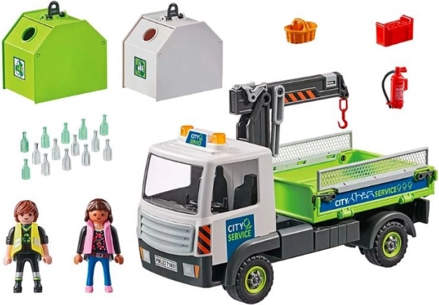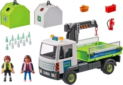 Velký jeřáb bez problémů zvedne kontejner s lahvemi a naloží ho na přívěs kamionu. Díky četným realistickým detailům a funkcím tyto soupravy z řady PLAYMOBIL City Life Pomoc při úklidu města, podněcují děti od 4 let k učení o ochraně životního prostředí prostřednictvím hry.