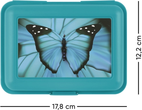 Plastový svačinový box Butterfly v modré barvě je ideálním řešením pro přenos jídla. Díky designu s motýlem je nejen praktický, ale také stylový. Je lehký, snadno čistitelný a odolný.