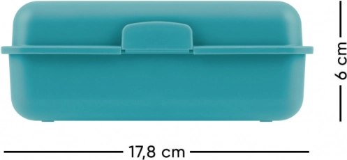 Box má rozměry 17.8 cm na šířku a 12.2 cm na výšku, což poskytuje dostatek prostoru pro uchování různých potravin a předmětů. Bezpečnostní zapínání zajišťuje, že obsah zůstane na svém místě.