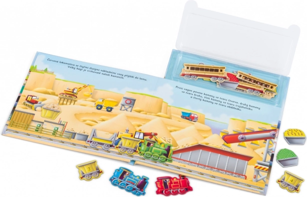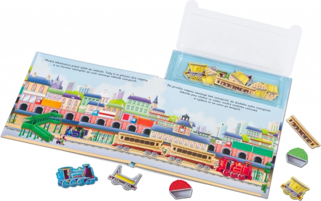 Každá stránka knihy přináší krátký příběh, který děti mohou dále rozvíjet pomocí 21 magnetek. Po hře je možné vozů snadno uložit zpět do úložného boxu, kde čekají na další dobrodružství.