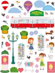 - Vyplňte známé vídeňské scenerie krásnými samolepkami podle vlastní fantazie.
