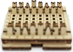 Tento promyšlený model přináší kapesní verzi klasických šachů v přírodním dřevě. Díky přesnému laserovému výřezu jednotlivých dílů je stavba plynulá, čistá a bez nutnosti lepidla či šroubků. Po dokončení získáte kompaktní šachovnici s figurkami, kterou snadno vezmete do kapsy nebo batohu – ideální pro cestování, pauzu v práci či rychlou partii s přáteli.