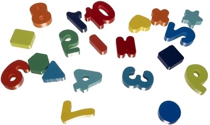 Sada obsahuje číslice 0–9, tři matematické znaky a 55 kroužků pro vizuální znázornění příkladů. Ideální pro učení čísel, sčítání a odčítání hrou.