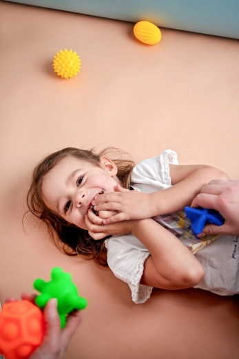 - Cvičení jemné motoriky – mačkání, přehazování a chytání posiluje prsty i dlaně.