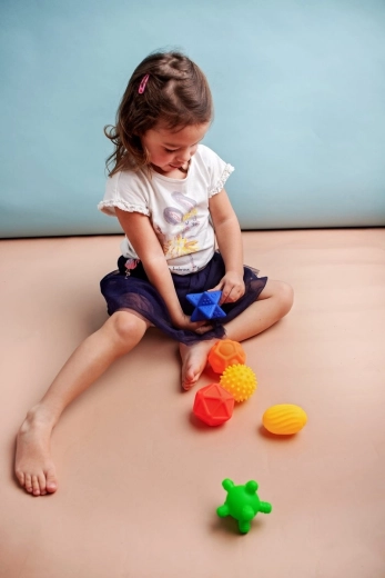 Sada Sensorky přináší pestré tvary, výstupky a výrazné barvy pro bohaté smyslové podněty. Každý míček má jinou strukturu, která podporuje rozlišování tvarů, uchopování a soustředění. Díky měkkému materiálu se míčky příjemně mačkají a jsou vhodné i pro nejmenší děti.