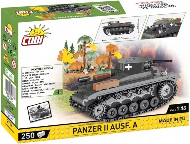 Ponořte se do modelářského zážitku s touto stavebnicí tanku Panzerkampfwagen II, který byl klíčovým strojem německé armády na počátku druhé světové války. Díky nové měřítku 1:48 je model ideální pro začátečníky i fanoušky stavebnic COBI. Součástí balení jsou doplňky z kostičkového prostředí, které přinášejí nový rozměr zábavy. Výjimečně přesná konstrukce a vysoká kvalita potisků zajišťují, že model zůstane bezchybný i po hodinách hry.