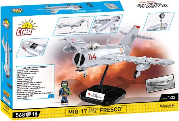 Model letounu MiG-17 je dokonale navržen ve škále 1:32, složený z 568 vysoce kvalitních dílků. Všechna označení a symboly na modelu jsou kvalitní neodstranitelný potisk. K modelu patří pohyblivé prvky jako jsou kola a otevíratelná kabina, která umožňuje umístit uvnitř detailní figurku pilota.