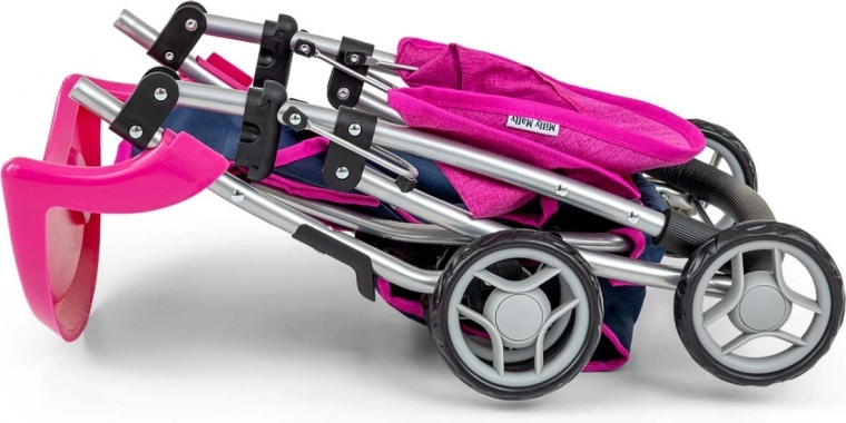 Kočárek je vybaven praktickými detaily – skládací stříškou proti slunci, odnímatelnou vaničkou (tácek) pro hraní na krmení, popruhy pro bezpečné usazení panenky a spodní síťkou na nákupy. Potah z polyesteru lze jednoduše sundat a vyprat.