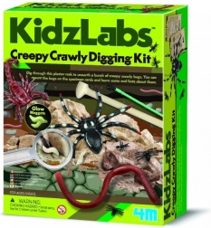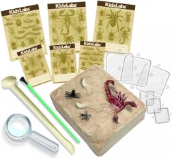 Sádrový blok skrývá realistické figurky pavouků, červů a mravenců. Děti je postupně odhalují pomocí přiloženého dlátka a štětce.