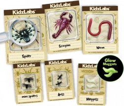 Po vykopání lze hmyz umístit na karty s exempláři a prozkoumat detaily pomocí nástrojů. Sada podporuje hands-on učení, představivost i základy přírodovědy.