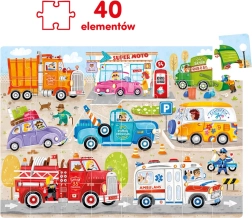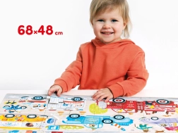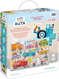 Brum, brum – připoutejte se, vyrážíme! CzuCzu Moto puzzle Auta potěší každého malého fanouška silnic a strojů. Velkoformátová 40dílná skládačka představuje různá auta, nákladní vozy a pracovní stroje v pohybu, takže si děti snadno najdou svého favorita.