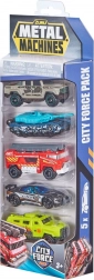 Sada Metal Machines City Force obsahuje pět různých, realisticky ztvárněných vozidel inspirovaných městskými službami. V balení najdete policejní vůz, sanitku, tank, hasičské auto a vojenský náklaďák. Díky detailnímu zpracování potěší každé dítě, které miluje automobilové hračky.