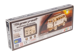Objevte zábavné a stylové dřevěné 3D puzzle WOODEN CITY Superfast – funkční mechanický model retro minibusu, který po sestavení nejen skvěle vypadá, ale i skvěle jezdí. Model se skládá bez lepidla a nářadí, je vyroben z kvalitní přírodní překližky a potěší propracovanými detaily i snadnou obtížností pro rychlé a zábavné stavění.