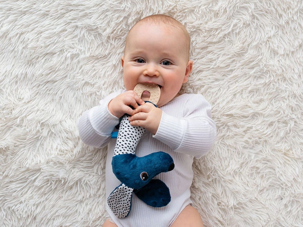 Měkké, texturované silikonové kousátko masíruje dásně a pomáhá zklidnit miminko v náročném období zoubkování. Snadno se drží a je bezpečné pro první kousání.