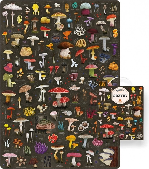 Puzzle Puzzlove Houby 1000 dílků přinášejí bohatě ilustrovanou sbírku lesních hub – od známých druhů až po kuriozity s neobvyklými názvy. Skvěle se hodí pro chvíle odpočinku po procházce i pro společné skládání s přáteli. Trénujte trpělivost, vytrvalost a postřeh, které se vám budou hodit i při opravdovém houbaření.