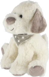 Tento hebký plyšový pejsek v bílé barvě s roztomilým šátkem je stvořený pro každodenní objetí. Je lehký, příjemný na dotek a bezpečný i pro novorozená miminka. Skvěle doplní dětský pokojíček a stane se oblíbeným kamarádem na cesty i do postýlky.