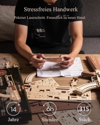 Model je skvělou kombinací technické výzvy a kvalitního zpracování ze dřeva. Vynikne jako stylová dekorace do pracovny či pokoje a zároveň pobaví při soutěžení v přesnosti. Produkt je určen pro stavitele od 14 let. Nemiřte na lidi ani zvířata; balicí materiál není hračka.