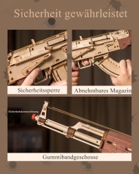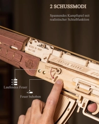 Toto 3D dřevěné mechanické puzzle v měřítku 0,8:1 přináší realistický zážitek ze stavby i autentický vzhled. Díly jsou přesně laserově vyřezané, takže do sebe skvěle zapadají a nepotřebujete žádné lepidlo. Po sestavení vás potěší pohyblivé prvky a možnost bezpečné zábavy s gumičkovou střelbou na přiložené terče.
