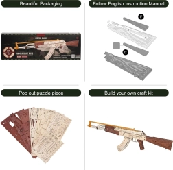 Robotime 3D dřevěné mechanické puzzle útočná puška AK-47