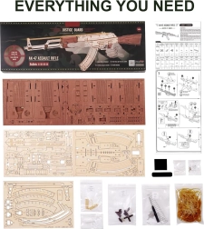 Postavte si propracovaný dřevěný model legendární pušky AK-47 a užijte si chytrou zábavu bez lepidla. Sada obsahuje 315 precizně vyřezaných dílů, funkční mechanismus pro střelbu gumiček a dřevěné terče pro bezpečné trénování. Ideální pro tvůrčí relax, jako dekorace i originální dárek pro nadšence od 14 let.