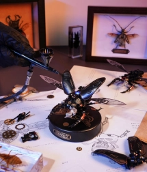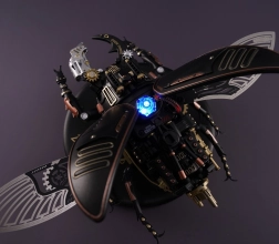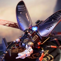 Tento propracovaný model roháče promění vaše pracovní místo v malou dílnu fantazie. Precizně navržené díly a kvalitní materiály vytvářejí působivý steampunkový vzhled, zatímco motor rozhýbe kovová membránová křídla a mechanické upínací čelisti. Integrovaný světelný indikátor energie podtrhuje technický charakter modelu.