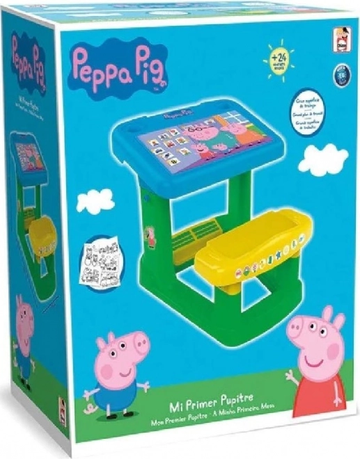 Rozkošná školní lavice s motivem Prasátko Peppa je ideální pro děti, které se chystají na první školní zkušenosti. Nabízí pohodlné sedátko, praktickou přihrádku pro potřeby ke kreslení a tvoření a podnožku pro větší pohodlí, vše vyrobeno z odolného plastu.