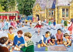 Vraťte se do bezstarostných časů základní školy s kolekcí čtyř puzzle od značky GIBSONS. Sada Školní den – 4×500 dílků přináší čtyři působivé ilustrace od Trevora Mitchella plné dětské radosti, her a komunitního života. Každé puzzle má 500 dílků, shodný rozměr a součástí balení jsou i předlohy motivů pro snadnější skládání.