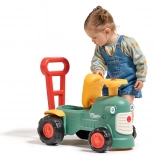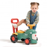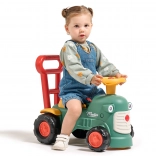 Odrážedlo traktor FALK Maurice kombinuje radost z jízdy s učením chůze. Dítě může jezdit a řídit pomocí volantu s klaksonem, nebo se zvednout za ergonomické zadní madlo a trénovat první krůčky. Nízké sedlo (cca 23 cm) usnadňuje nasedání, zatímco široká kola zajišťují stabilitu na hladkých i kobercových plochách.