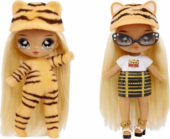 Každá panenka nabízí kvalitní zpracování, odnímatelnou rýhovanou/sošnou flokovanou čepici, stylové oblečky s potiskem a pohyblivá místa v oblasti krku, ramen a boků pro snadné pózování. Kolekce zahrnuje šest zvířecích motivů – od tygra po zebru – a skvěle se hodí do dětské sbírky.