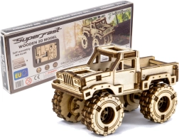Toto dřevěné 3D puzzle MONSTER TRUCK 3 nabízí jedinečný zážitek ze stavby – bez lepidla, bez nepořádku, s maximální přesností výřezů. Model vychází z prvních poválečných nákladních vozů používaných armádou USA a přináší autentický off‑road vzhled s velkými koly a robustní kabinou.