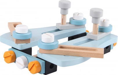 Tato hračka obsahuje nástroje, jako je pila, kladivo, pravítko, šroubovák a plochý klíč. Kromě těchto nástrojů naleznete i spoustu šroubů, podložek a dřevěných prvků, které lze spojovat a šroubovat, poskytujíc tak spoustu hodin zábavy.