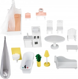 Domeček obsahuje 15 kusů dřevěného nábytku, který lze libovolně přesouvat a měnit tak uspořádání místností.
