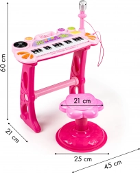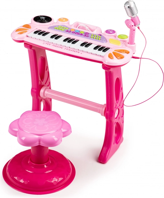 S touto hračkou se vaše dítě může ponořit do světa melodií, zvuků a skládat si vlastní písně. Keyboard vypadá jako opravdový nástroj a je dodáván se stoličkou pro pohodlné sezení před klávesy.