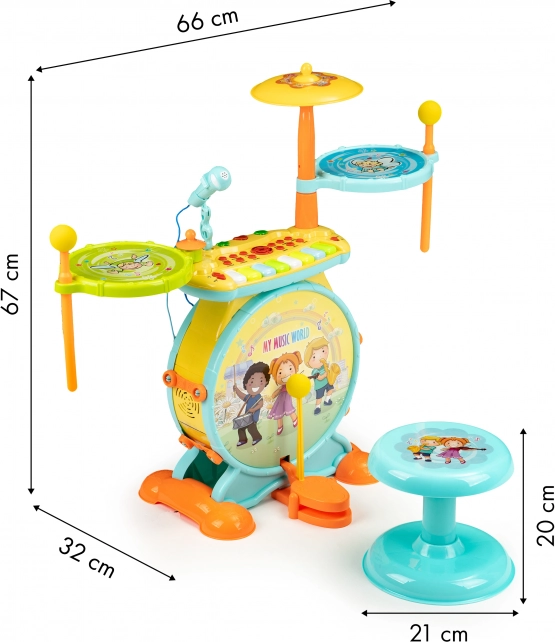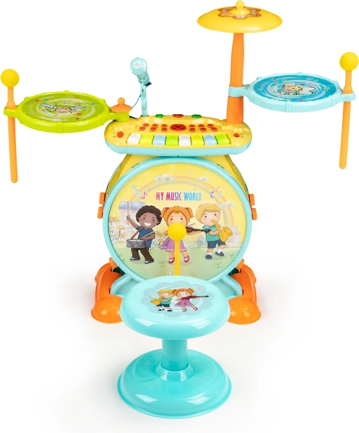 Umožněte svým dětem proniknout do světa melodií a komponování vlastních písní s tímto úchvatným hudebním setem. Dětská bicí souprava vypadá jako skutečný hudební nástroj a je vybavena stoličkou pro pohodlné hraní. Děti budou nadšené z možností, které tento set nabízí, včetně karaoke a připojení k telefonu či mp3 přehrávači.